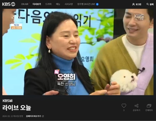 '3월 12일 방송분 [생방송 라이브 오늘] 사투리 시낭송 촬영 하였습니다'